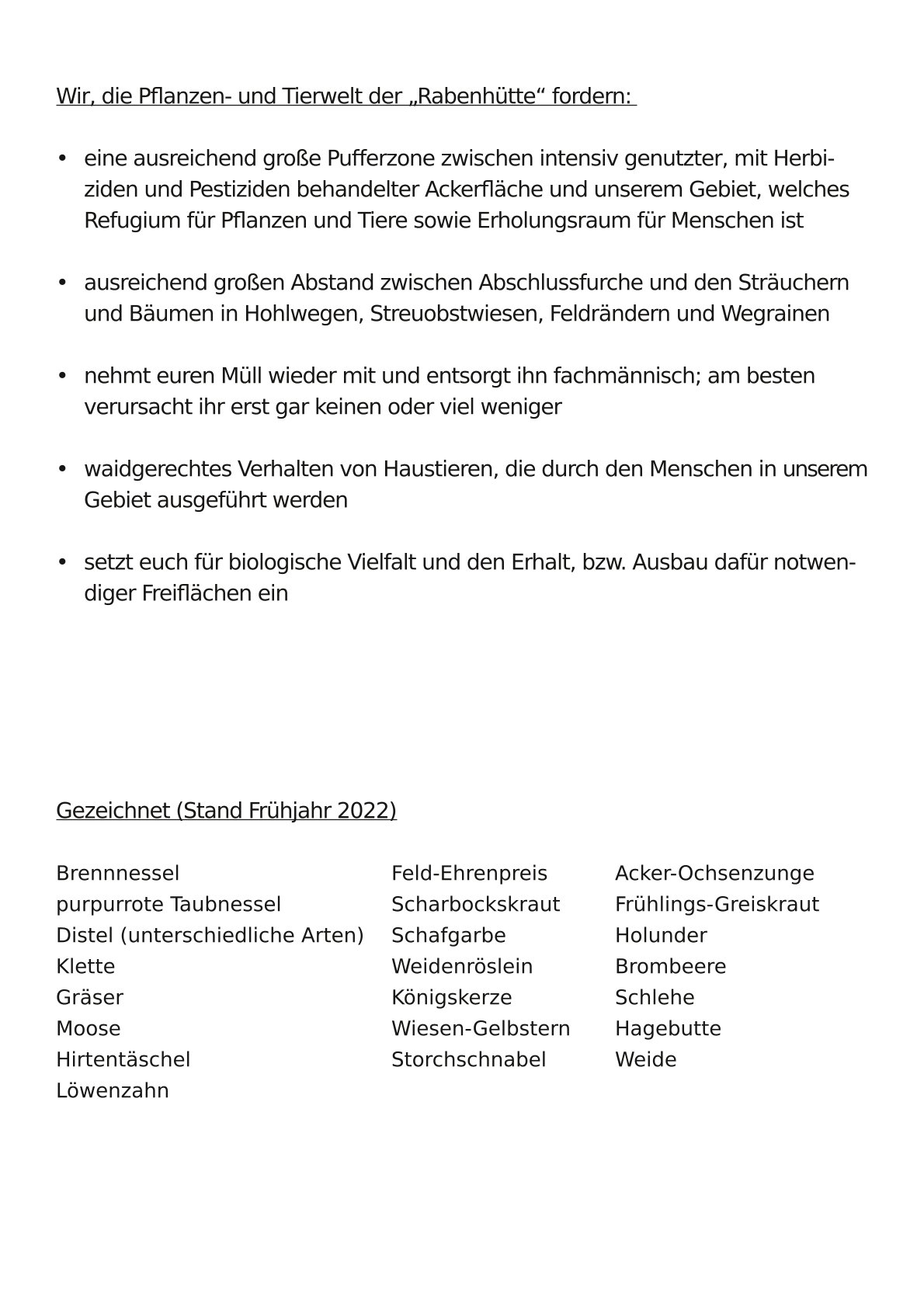 Schautafeltext Seite 4 ← Zurück Offener Brief der Pflanzen- und Tierwelt der ehemaligen Sandgrube „Rabenhütte“, Seite 4