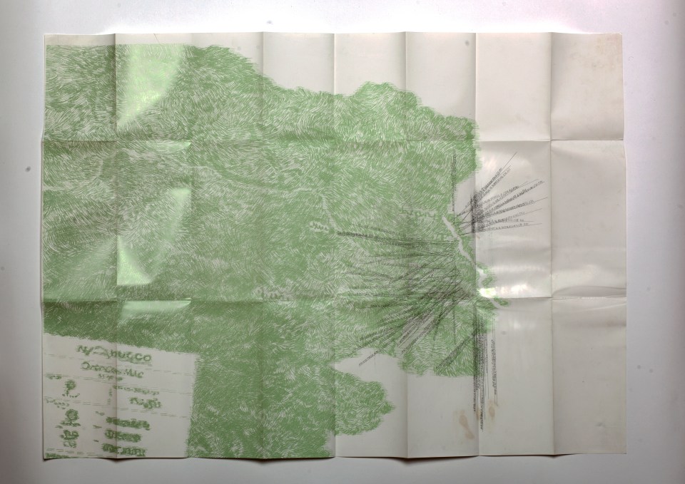← Zurück Weiter → Track & Log / Karte Östereich, Handzeichnung auf Zinkographie-Druck, 61 x 86 cm, 2012. Foto: Matthias Ritzmann