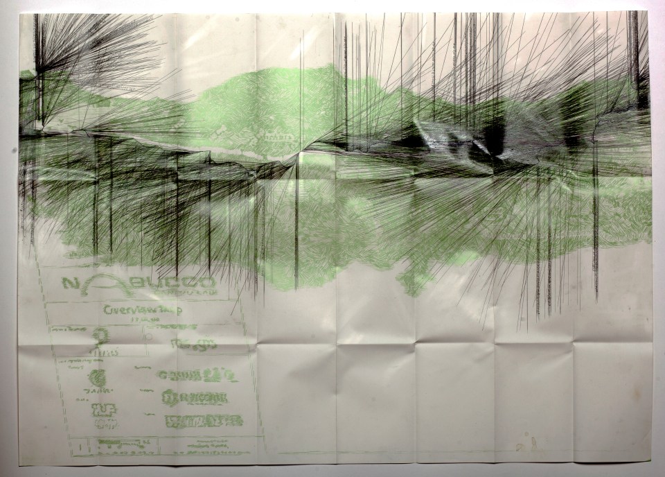 ← Zurück Weiter → Track & Log / Karte Türkei, Handzeichnung auf Zinkographie-Druck, 61 x 86 cm, 2012. Foto: Matthias Ritzmann
